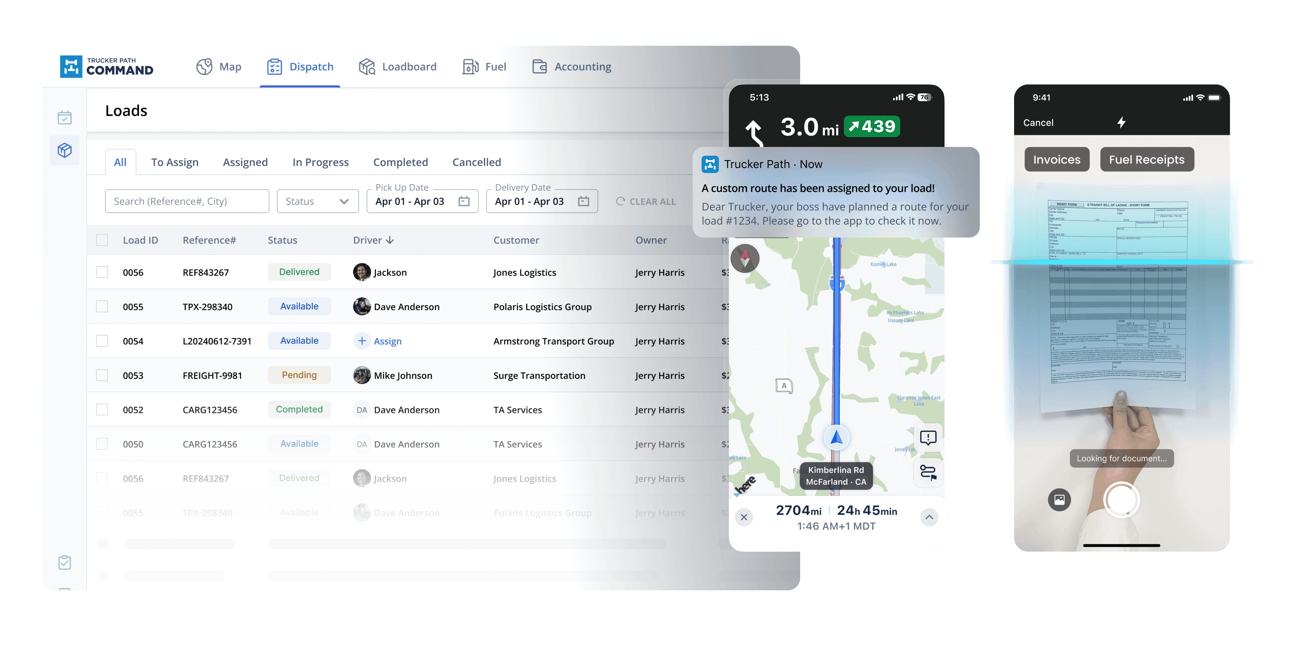 Create, assign, and track loads with digital documentation and proof of delivery.
