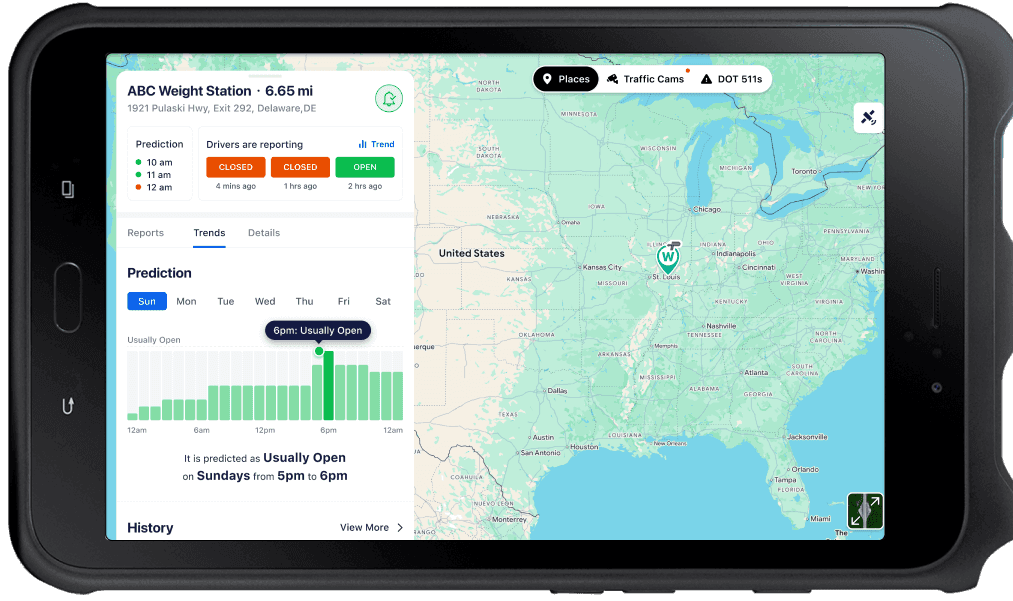 Truckers easily see weigh stations, their open/closed status and wait times right within the app. This helps them to be prepared and more productive.