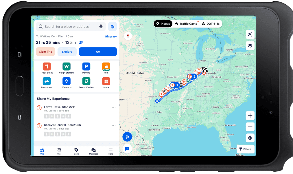 Whether it’s a truck stop, rest area, hotel, restaurant, or something else they need, drivers find it in Trucker Path and see the ratings and reviews from fellow drivers. POIs appear on the navigated route and can be selected as stops in a customized route.