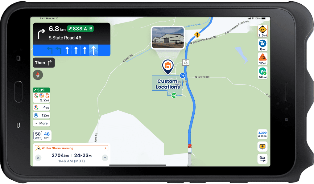 With last mile navigation directly to facility truck entrances while avoiding road hazards, fleet operators can rest assured their drivers have the optimized route to their delivery point.